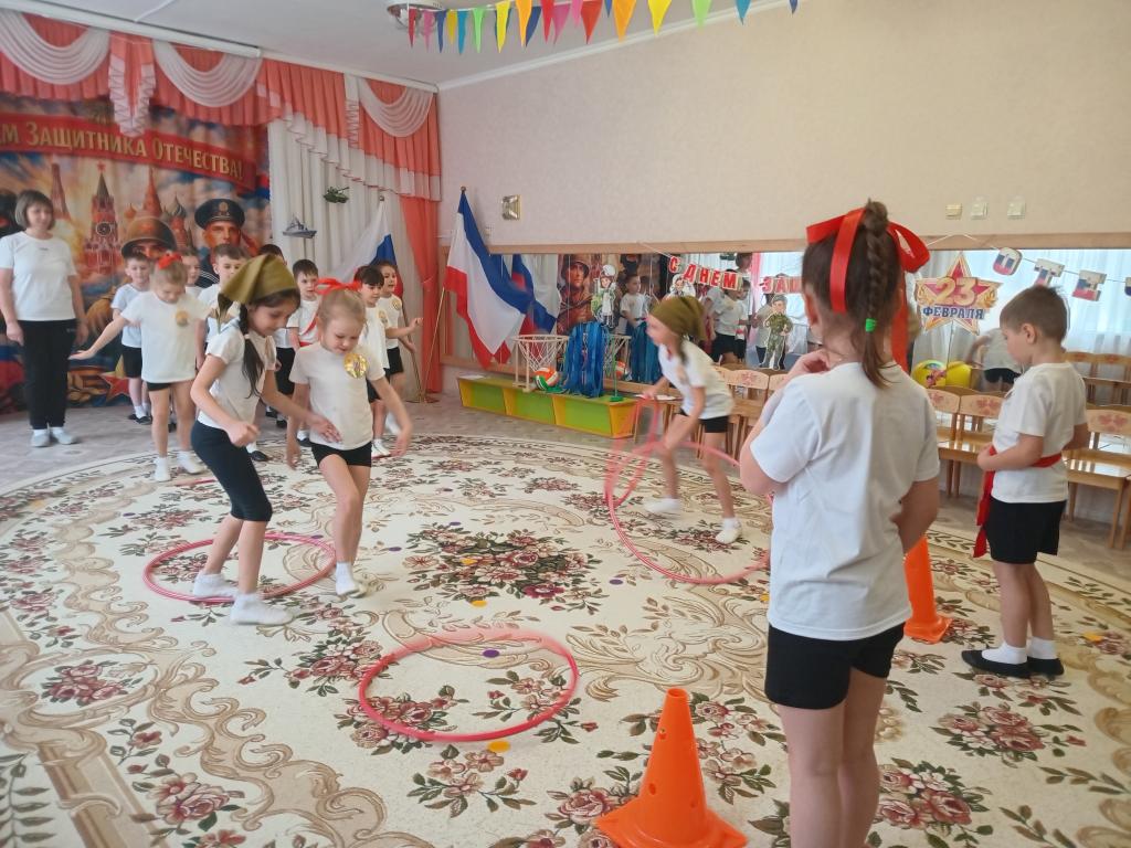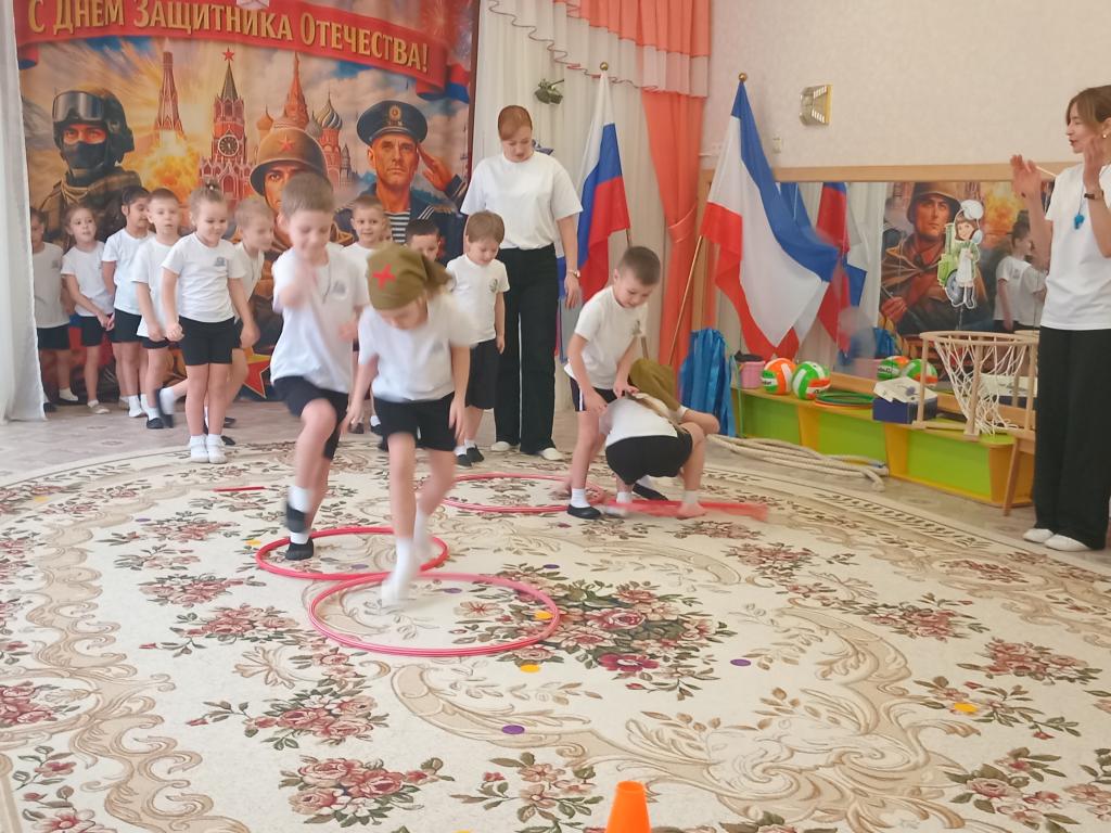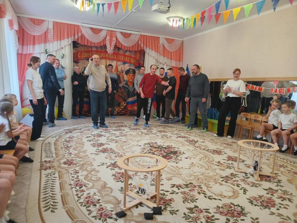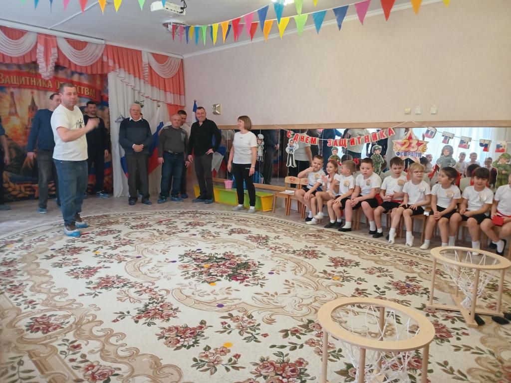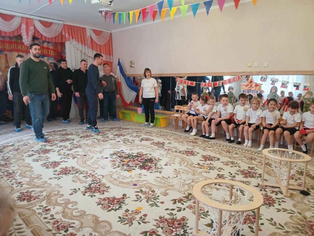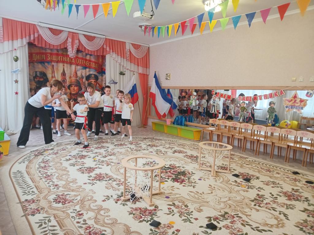 Как итоговые мероприятия тематической недели посвященный Дню защитника Отечества в старшей и подготовительной группах прошли спортивные развлечения. Праздники проходили в форме игры и состоял из различных эстафет. Дети соревновались, пели песни и читали стихотворения. На празднике в увлекательных соревнованиях приняли участия папы и дедушки наших воспитанников. Все участники праздника получили заряд положительных эмоций.