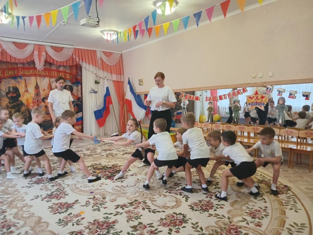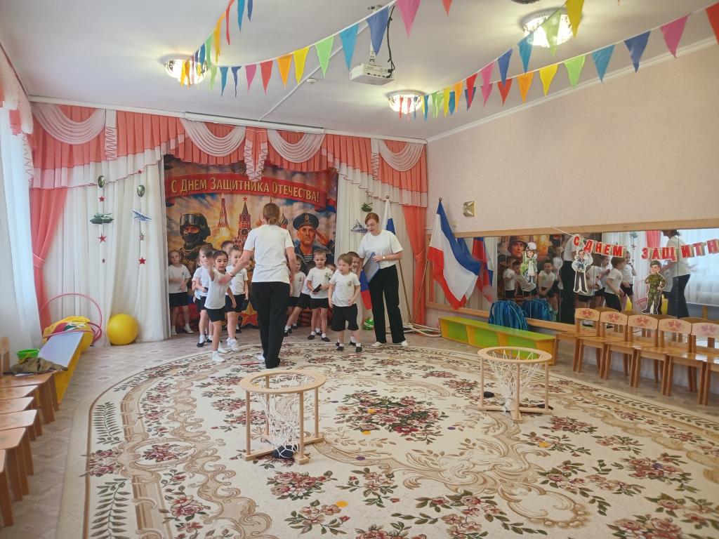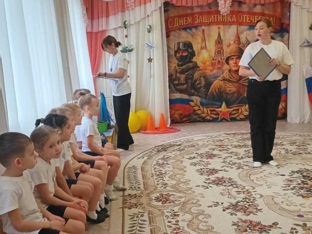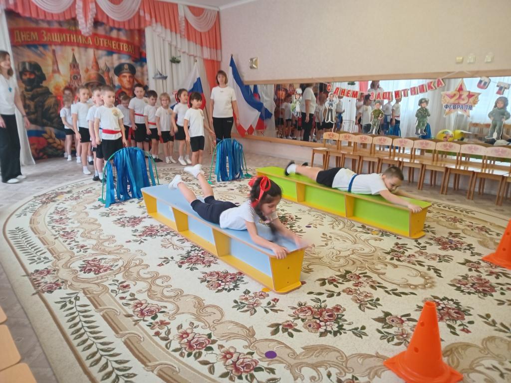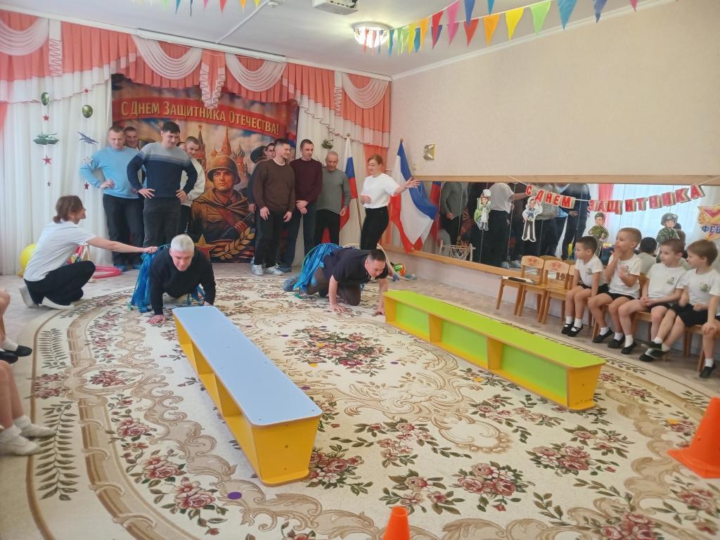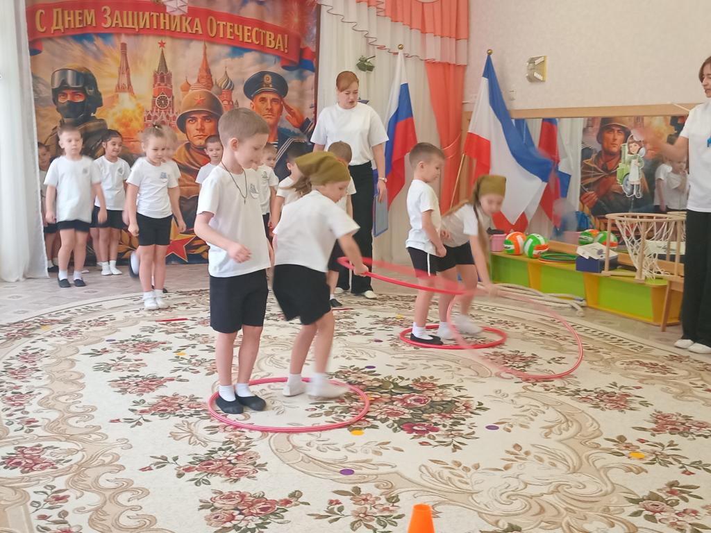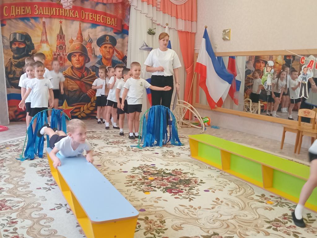 Как итоговые мероприятия тематической недели посвященный Дню защитника Отечества в старшей и подготовительной группах прошли спортивные развлечения. Праздники проходили в форме игры и состоял из различных эстафет. Дети соревновались, пели песни и читали стихотворения. На празднике в увлекательных соревнованиях приняли участия папы и дедушки наших воспитанников. Все участники праздника получили заряд положительных эмоций.