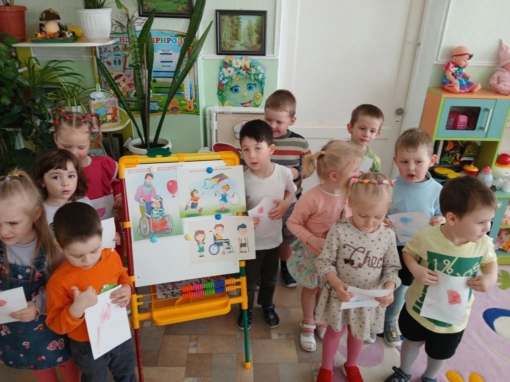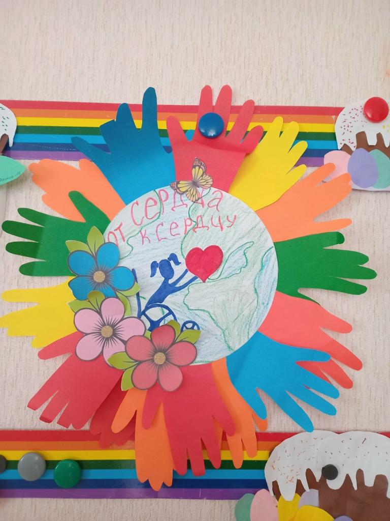 В рамках проекта течении недели воспитатели всех возрастных групп рассказывали детям о людях - инвалидах, которые живут рядом с нами и несмотря на недуги, живут и радуются жизни. Вместе с воспитанниками выясняли, что такое добро, рассказывали, какие они добрые поступки совершили. Дети просматривали видеоролики, мультфильмы, читали рассказы и сказки по тематике, учились помогать героям искать правильные пути к достижению целей и этому в первую очередь помогала доброта окружающих людей, забота, внимание и дружба. Ребята рисовали, лепили и клеили аппликации по данной теме.
