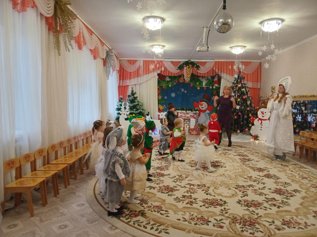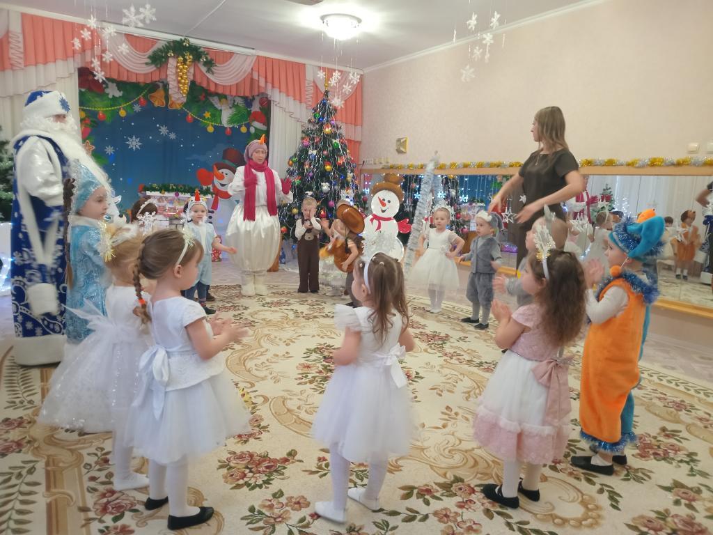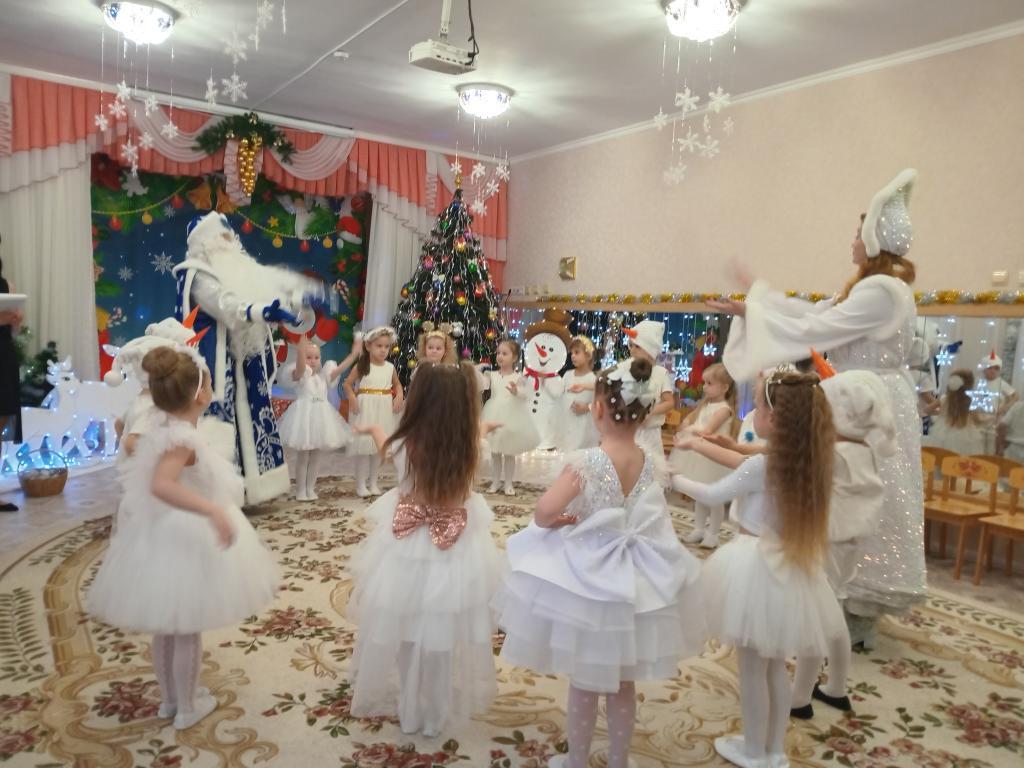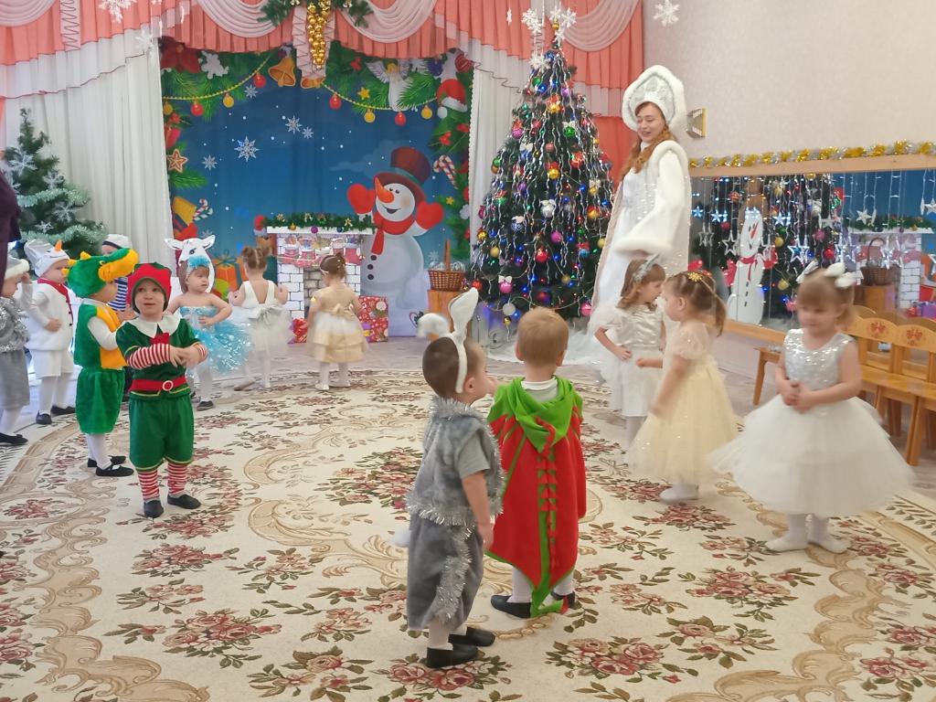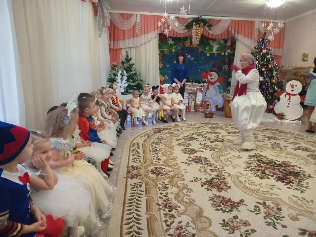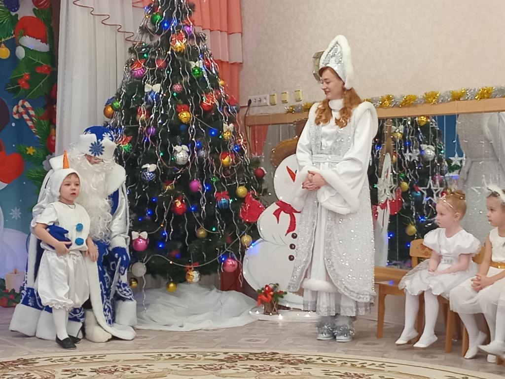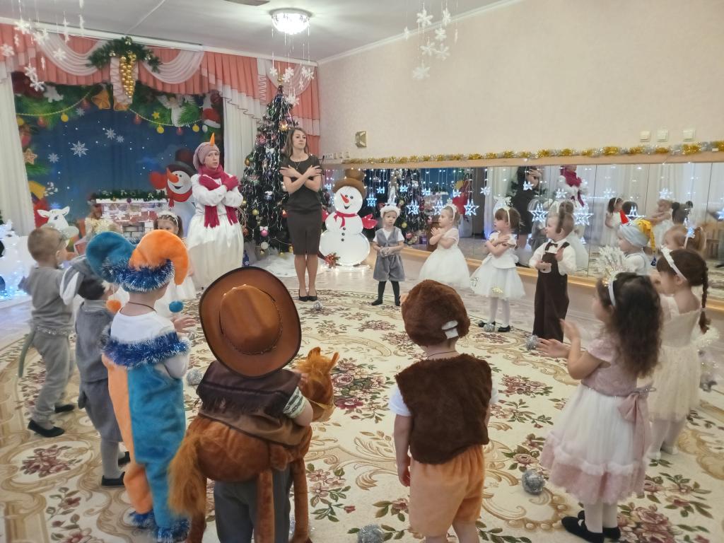 С 23 по 26 декабря в нашем детском саду проходят новогодние утренники. Красиво украшенный зал, нарядная елка, подарки, Дед Мороз и Снегурочка, весёлый Снеговик и многие другие сказочные герои ожидали ребят на празднике.