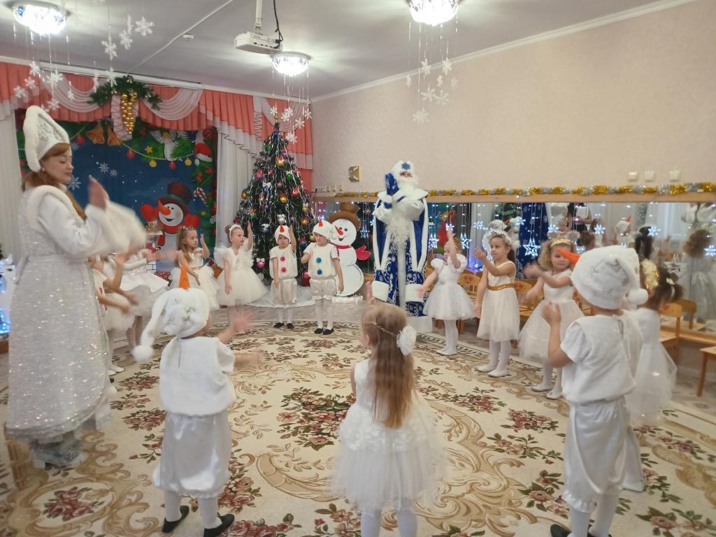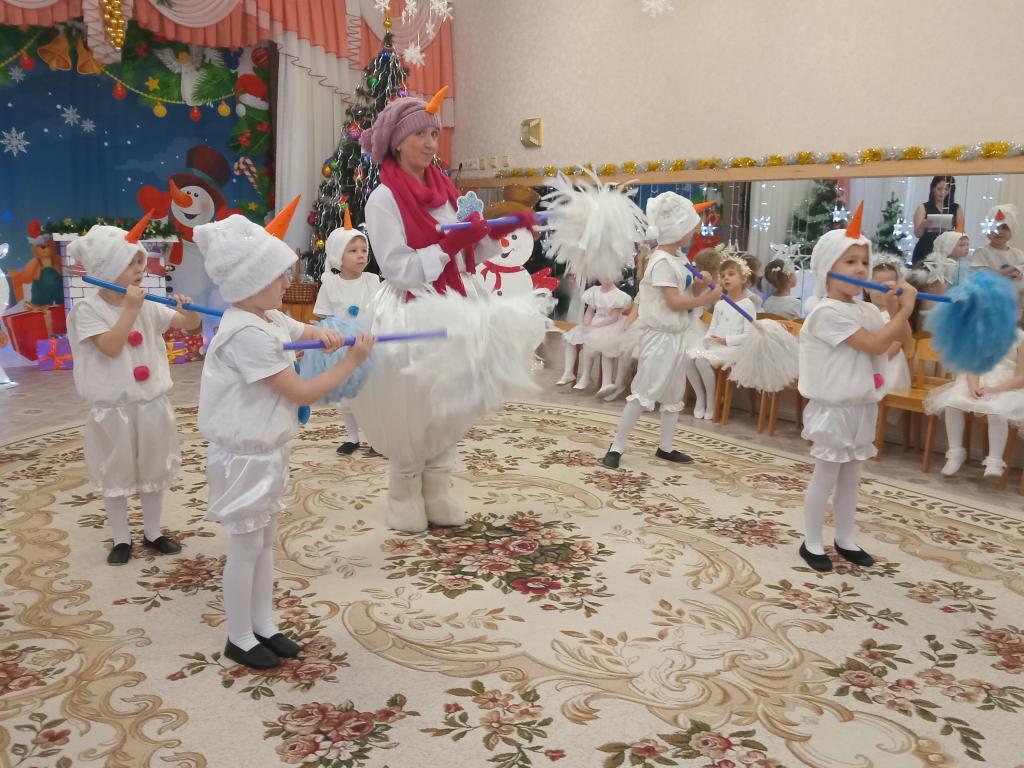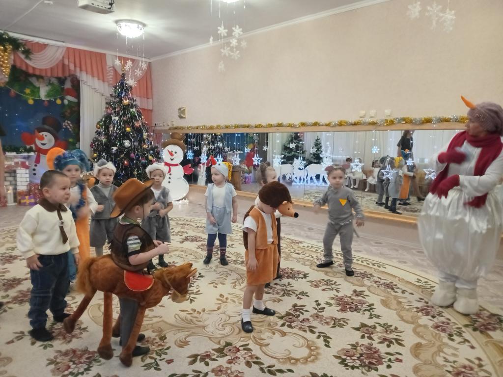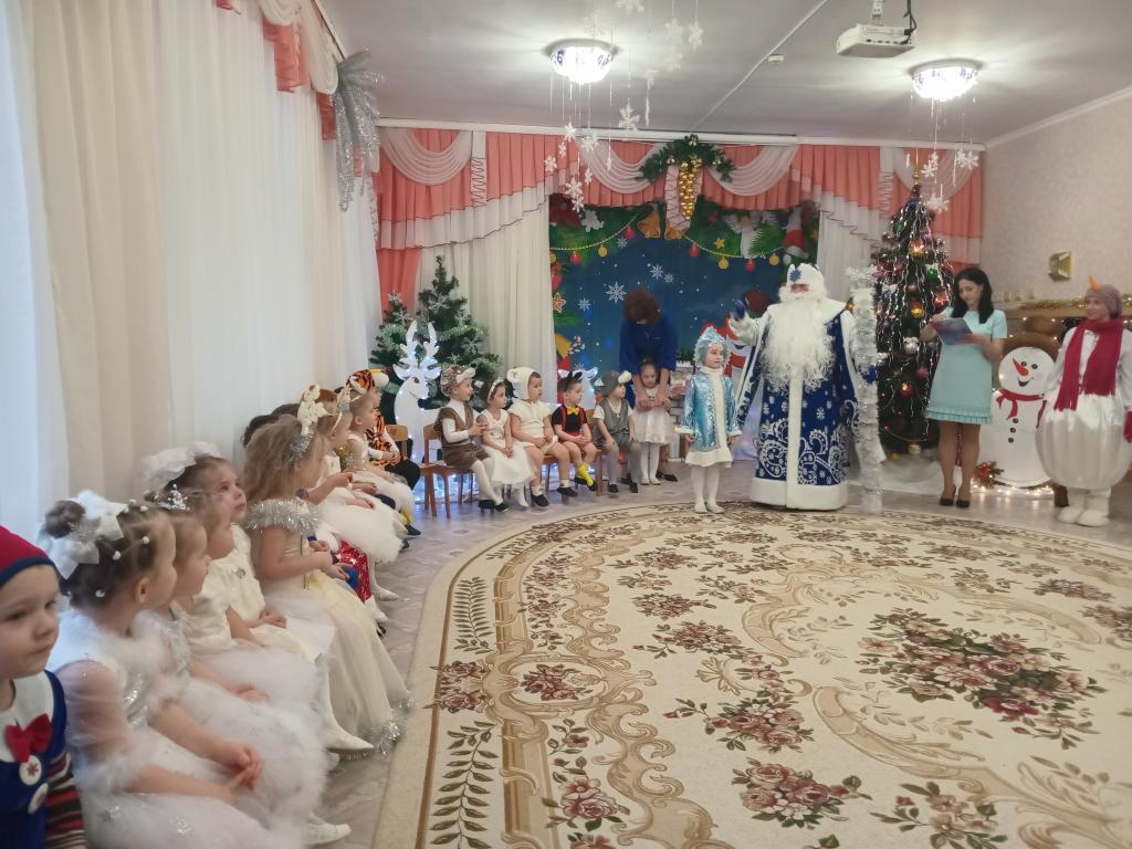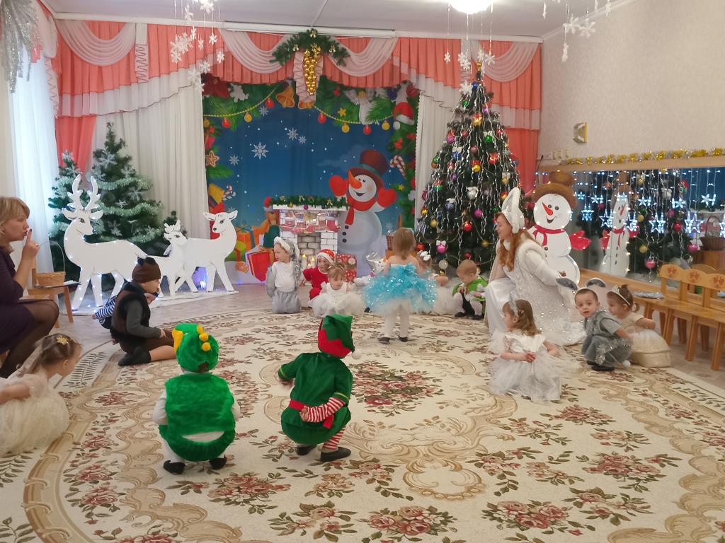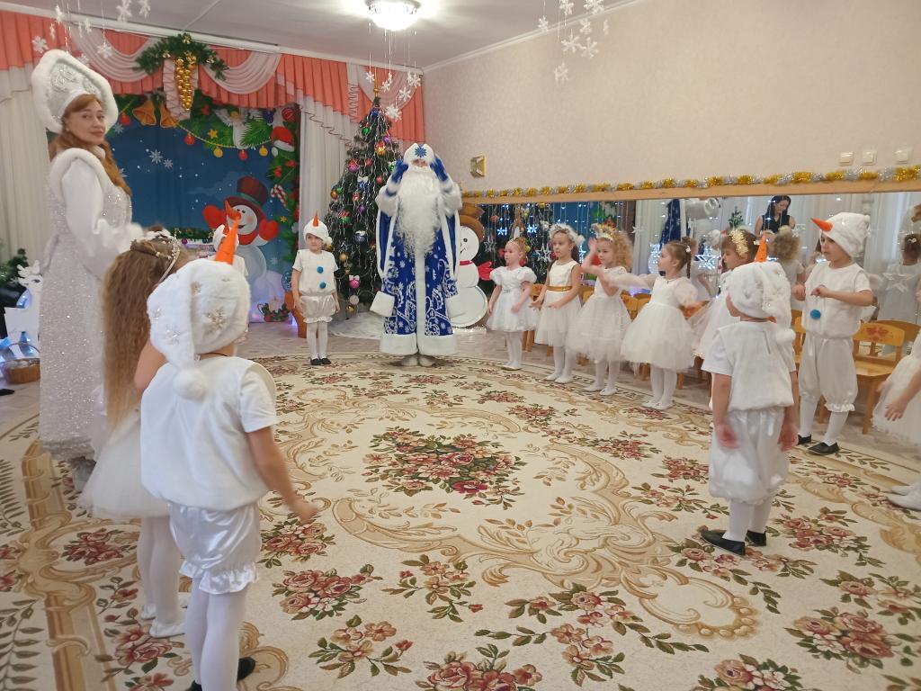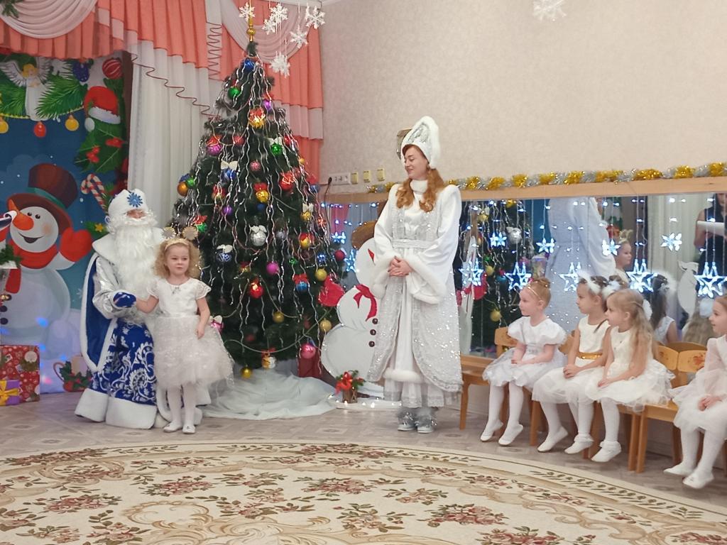 С 23 по 26 декабря в нашем детском саду проходят новогодние утренники. Красиво украшенный зал, нарядная елка, подарки, Дед Мороз и Снегурочка, весёлый Снеговик и многие другие сказочные герои ожидали ребят на празднике.