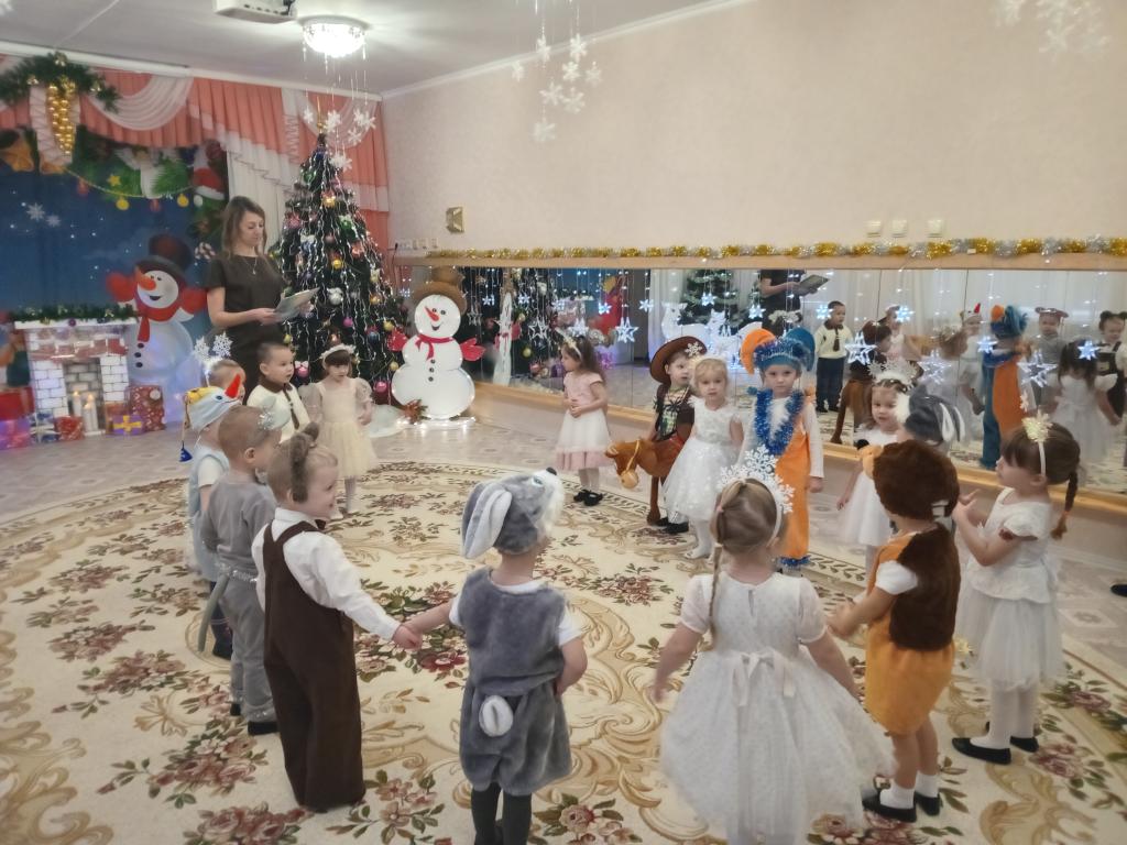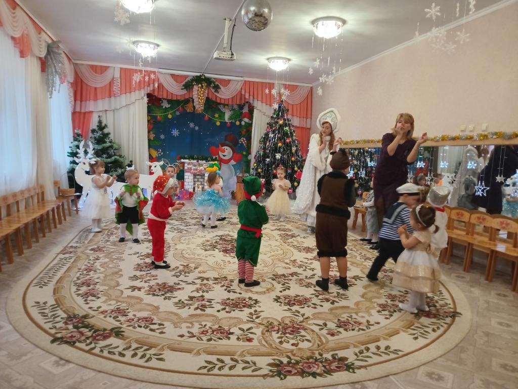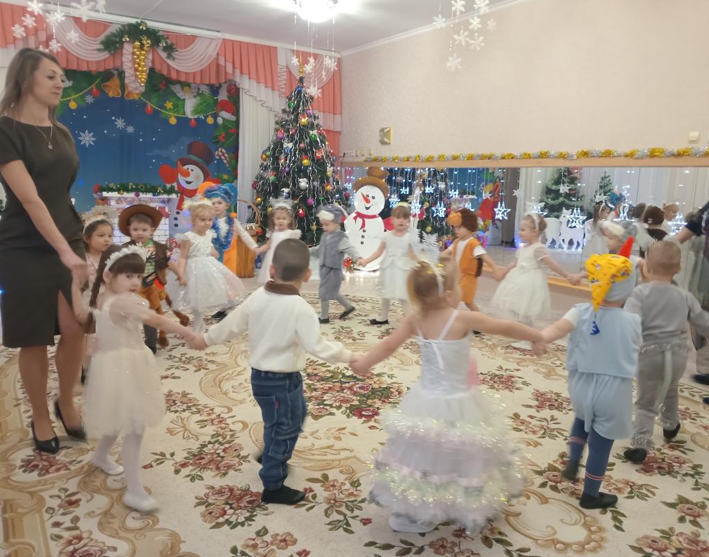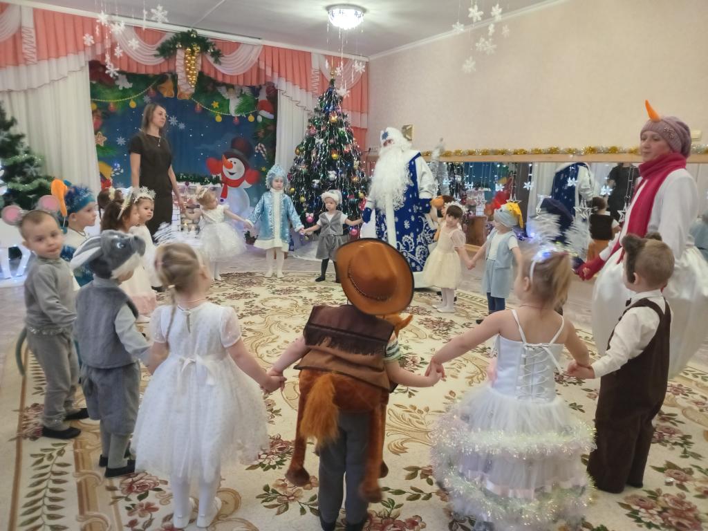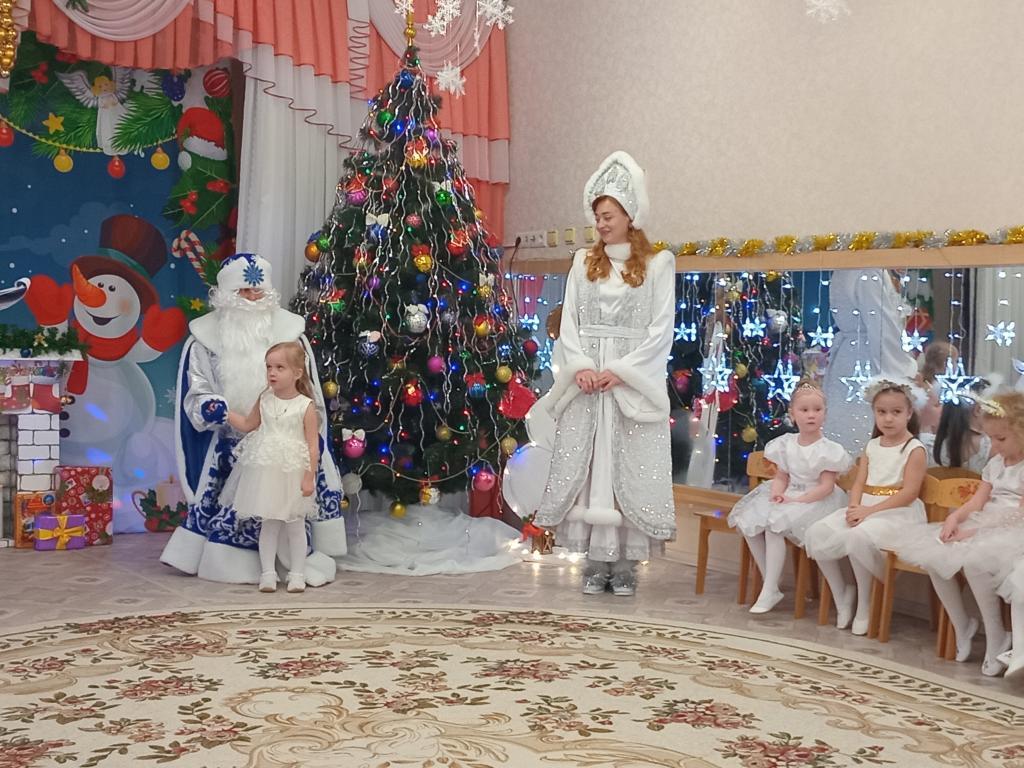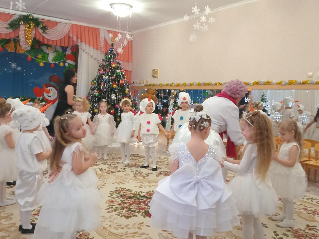С 23 по 26 декабря в нашем детском саду проходят новогодние утренники. Красиво украшенный зал, нарядная елка, подарки, Дед Мороз и Снегурочка, весёлый Снеговик и многие другие сказочные герои ожидали ребят на празднике.
