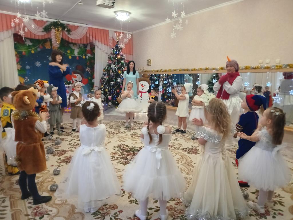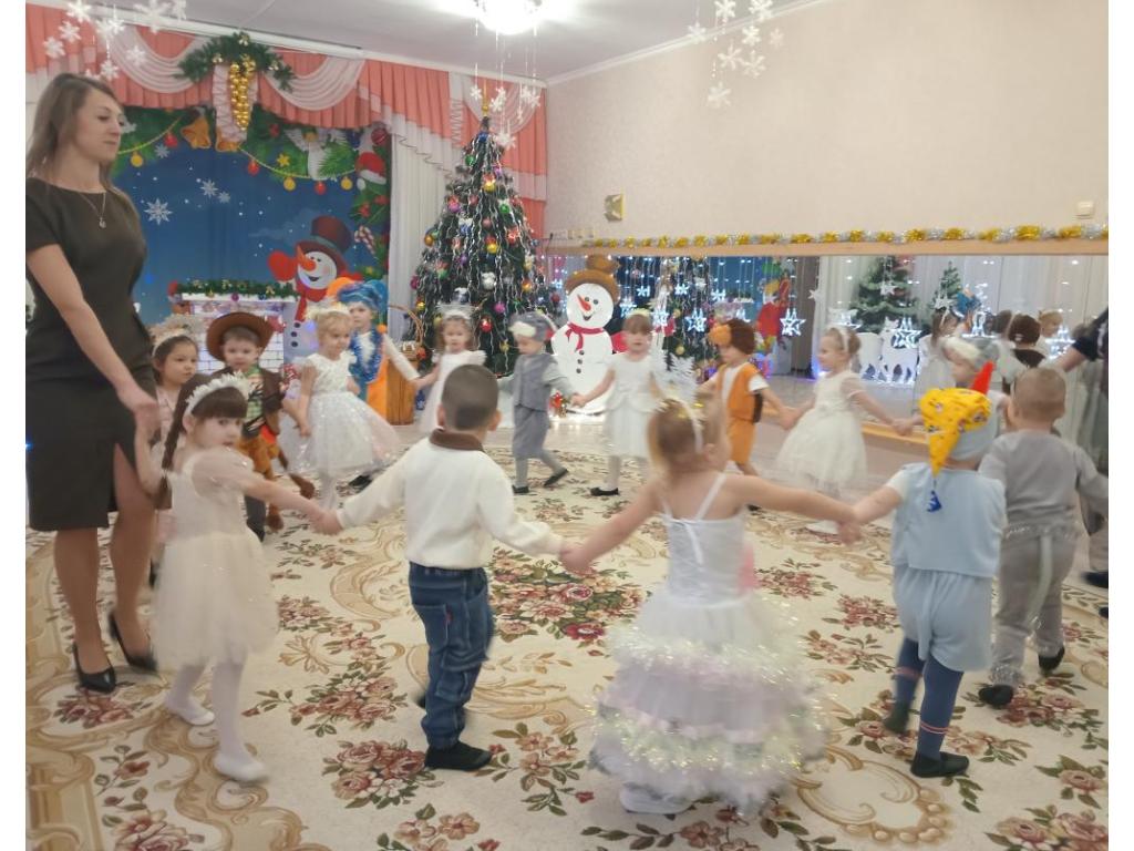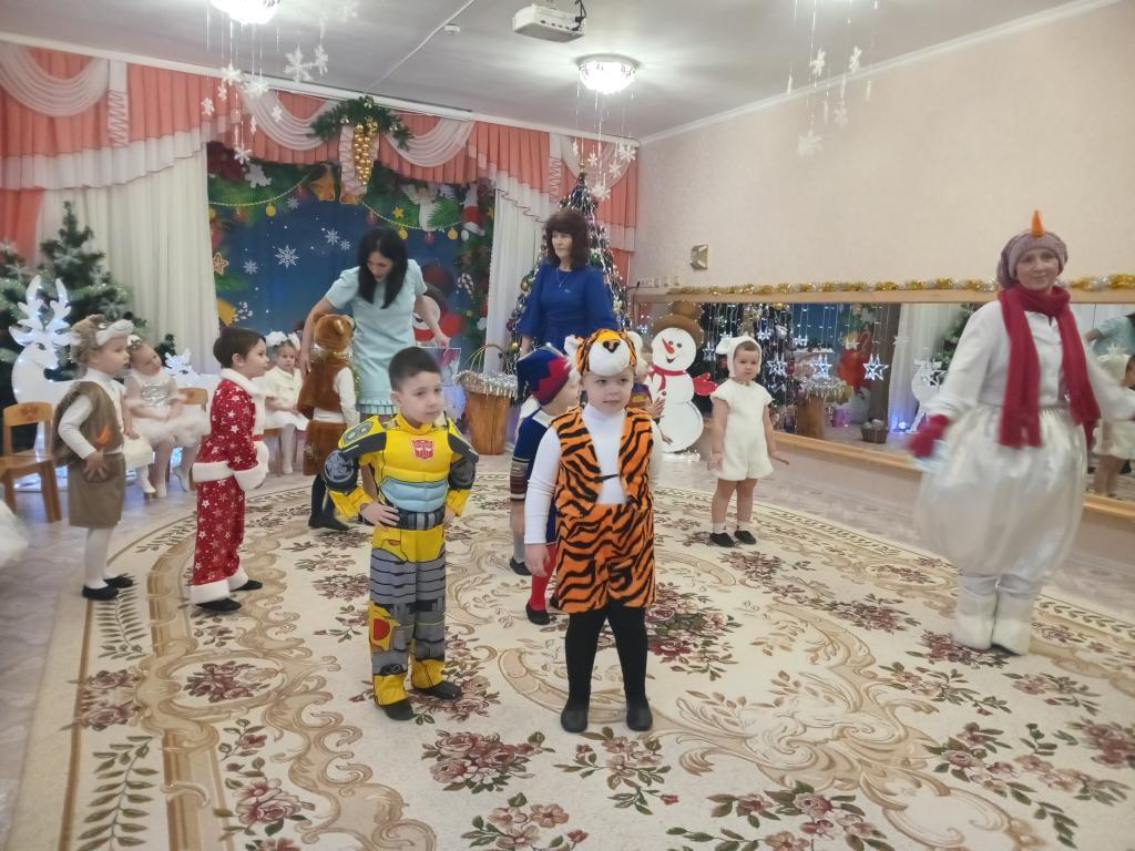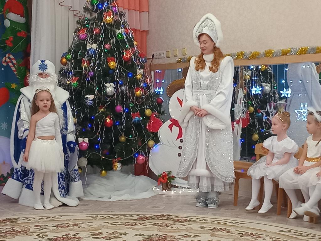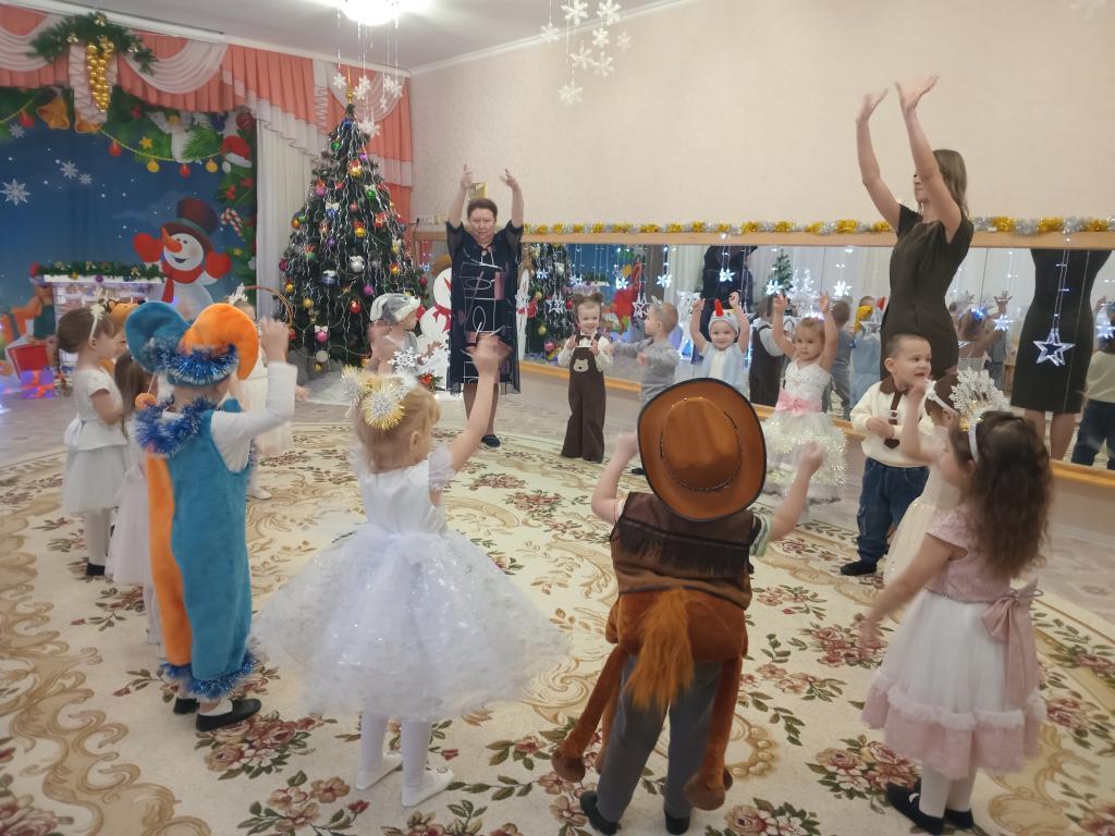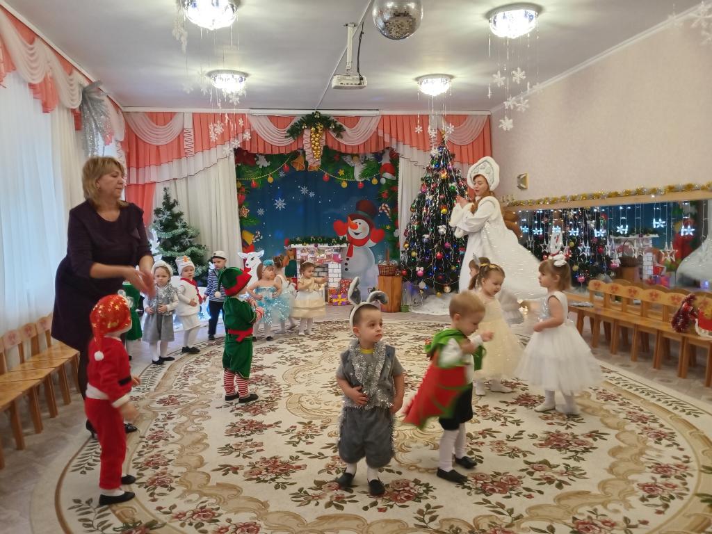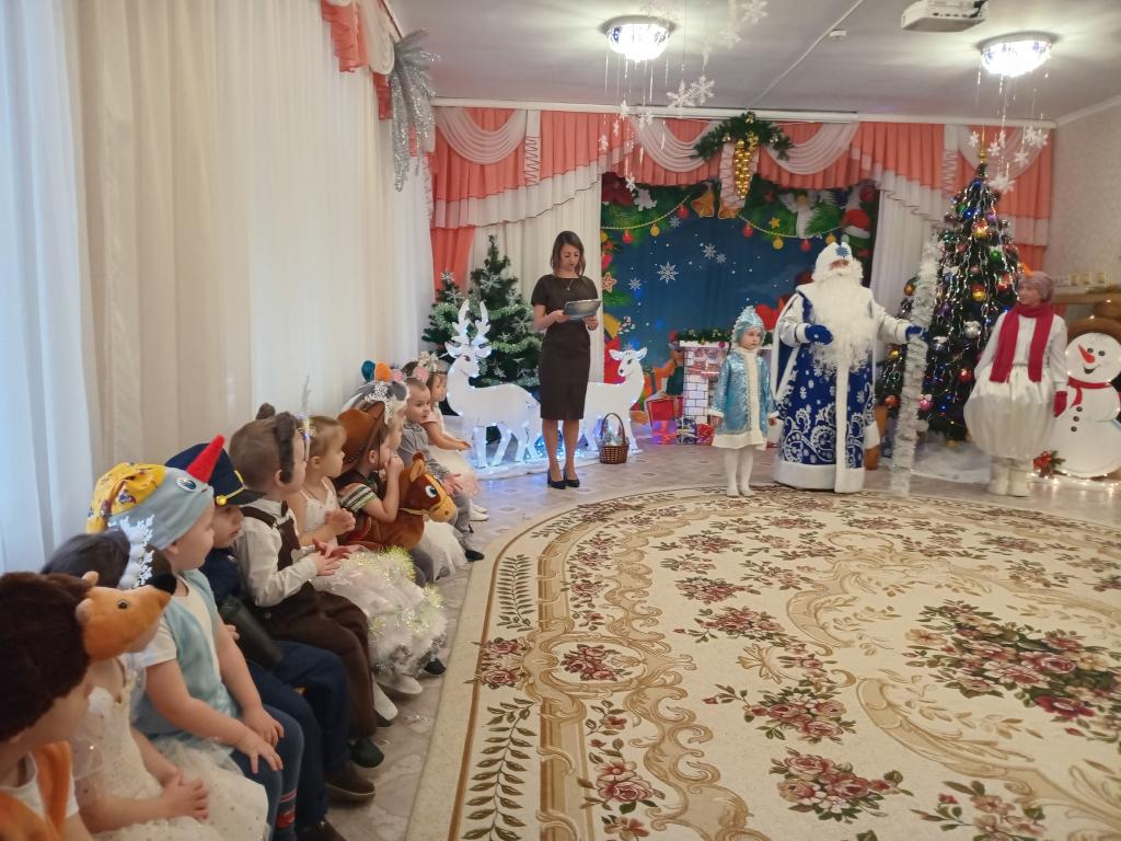С 23 по 26 декабря в нашем детском саду проходят новогодние утренники. Красиво украшенный зал, нарядная елка, подарки, Дед Мороз и Снегурочка, весёлый Снеговик и многие другие сказочные герои ожидали ребят на празднике.