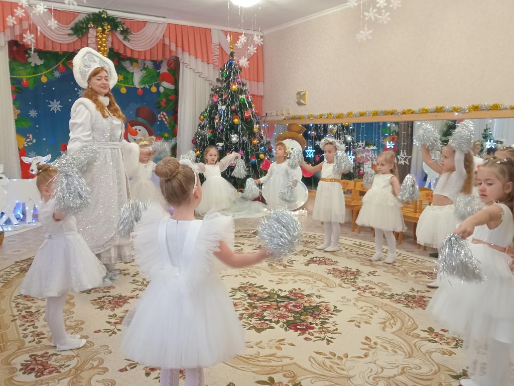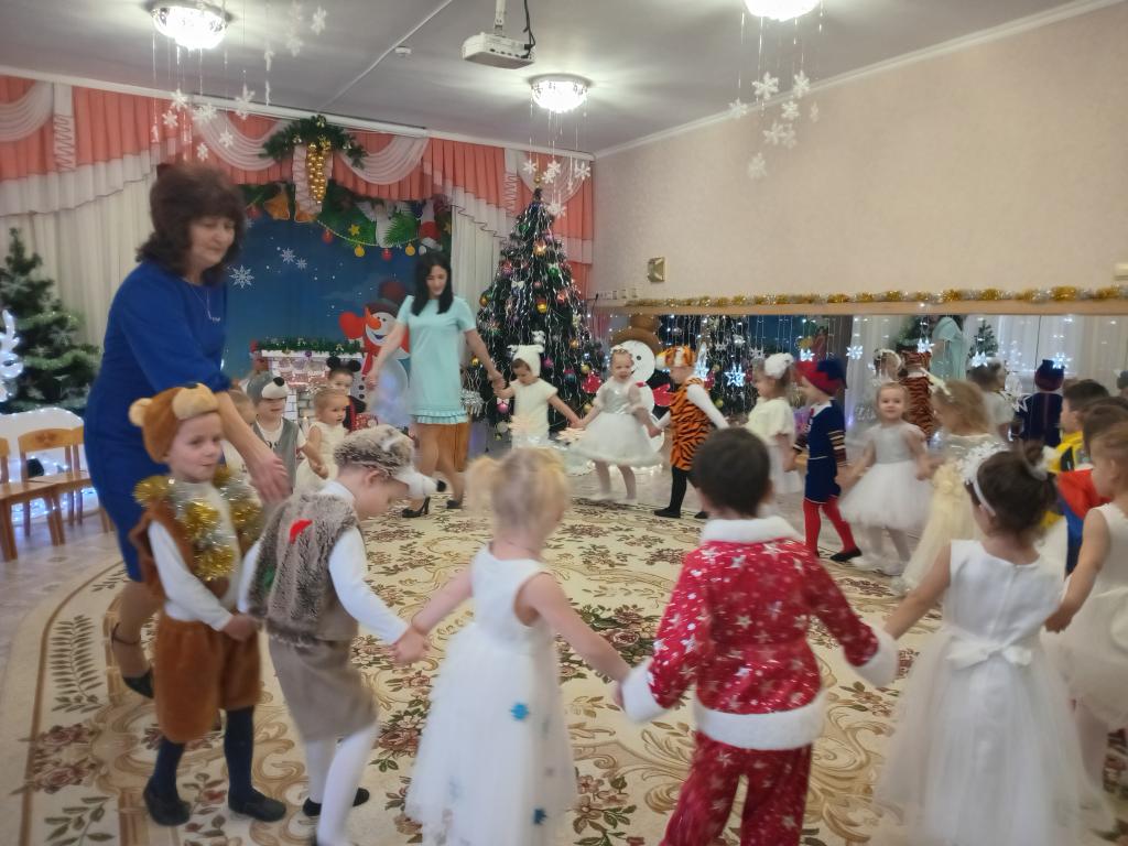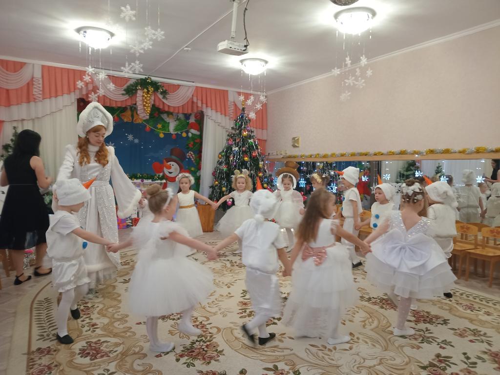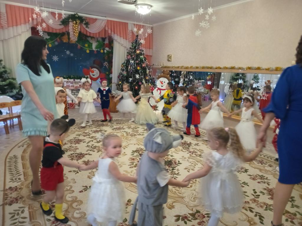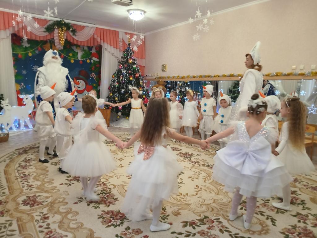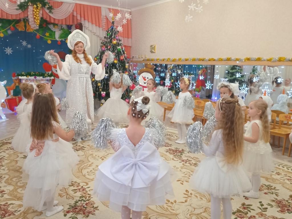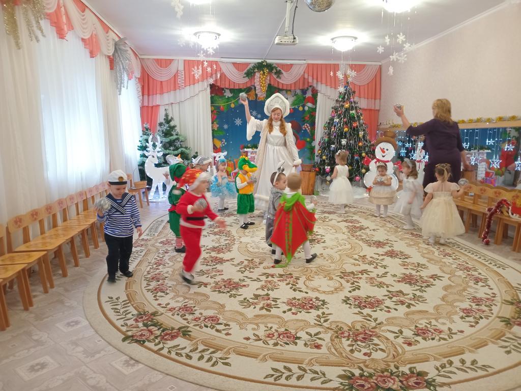 С 23 по 26 декабря в нашем детском саду проходят новогодние утренники. Красиво украшенный зал, нарядная елка, подарки, Дед Мороз и Снегурочка, весёлый Снеговик и многие другие сказочные герои ожидали ребят на празднике.