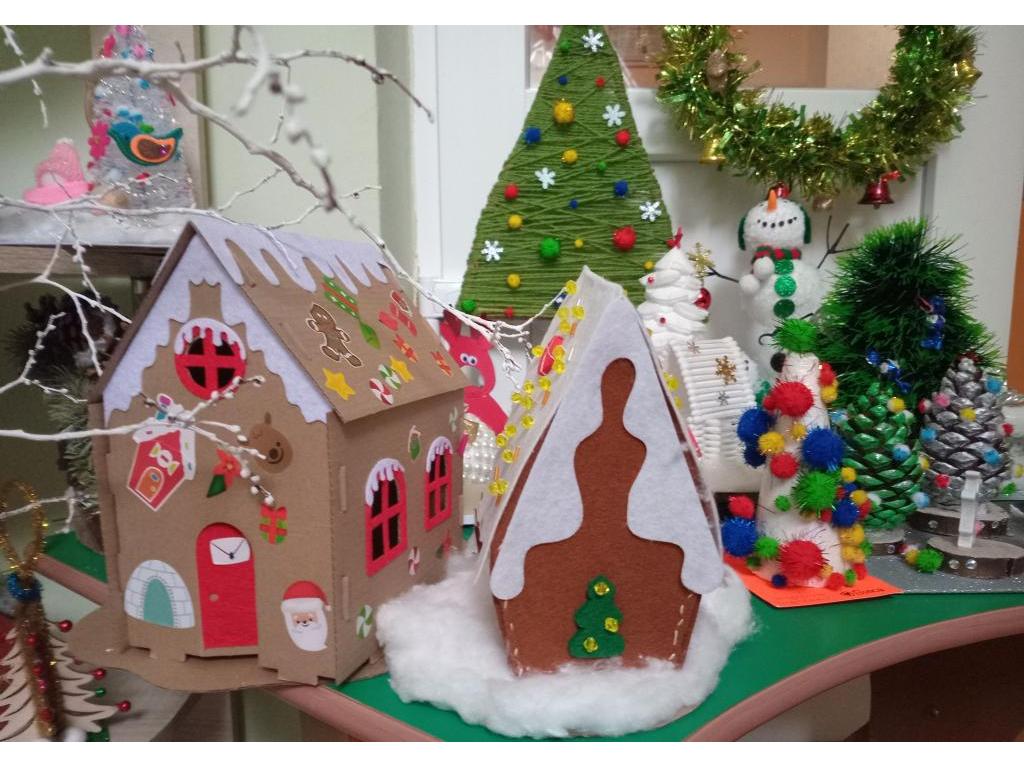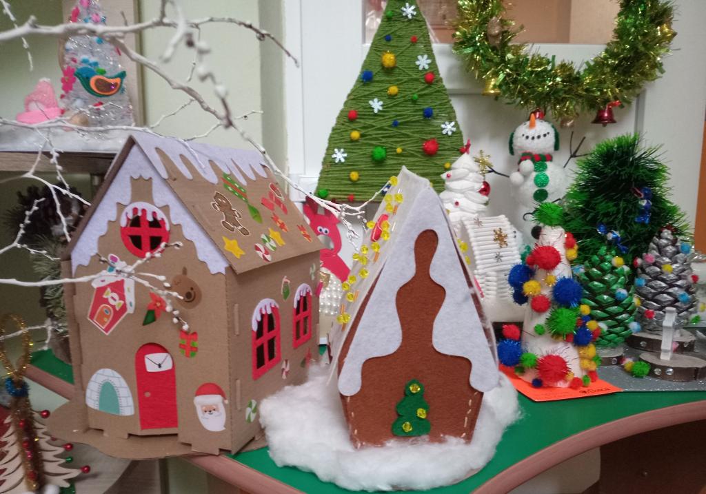 Выставка оказалась интересной и увлекательной! Заснеженные разнообразные домики, красивые ёлочки, забавные снеговики, удивительные гномики, новогодние венки – всё сделано руками детей и родителей. Зимние и новогодние сюжеты семейного творчества украсили первый этаж и превратили его в волшебную новогоднюю сказку.