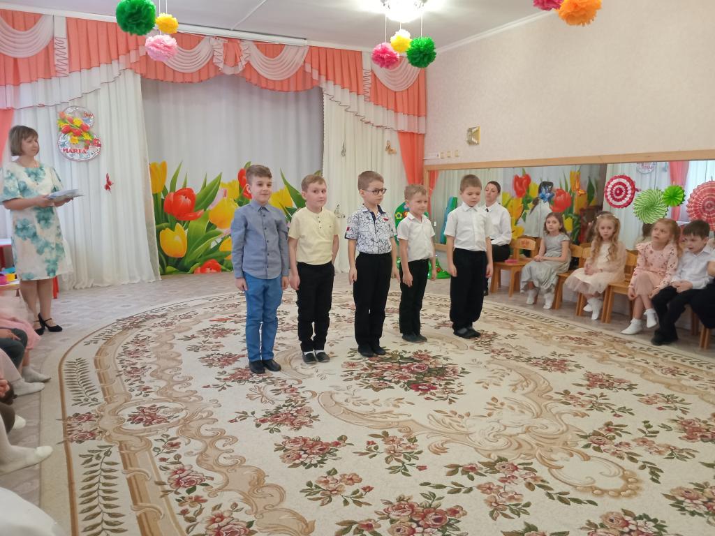 И конечно, наши ребята с подготовительной группы 2 "Капельки" сегодня 3 марта постарались удивить и порадовать своих мамочек и бабушек нежными стихами и песнями, красивыми и трогательными танцами.