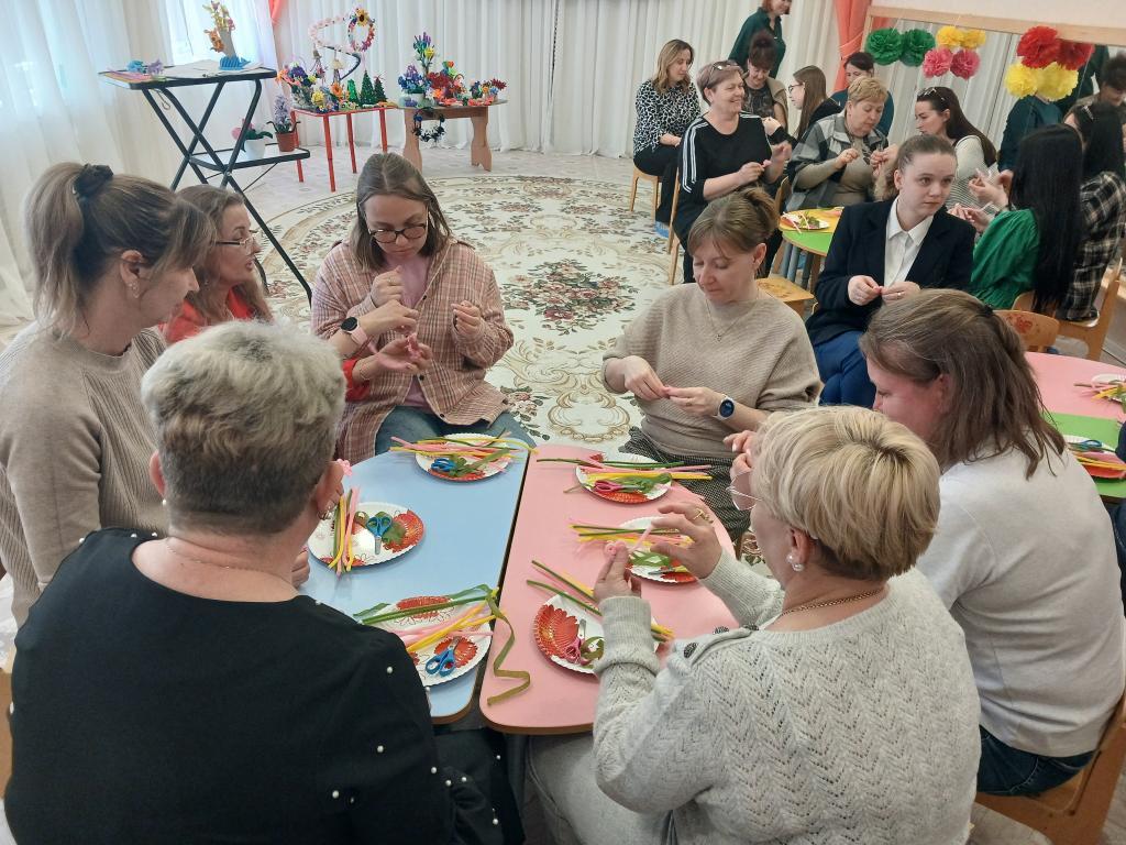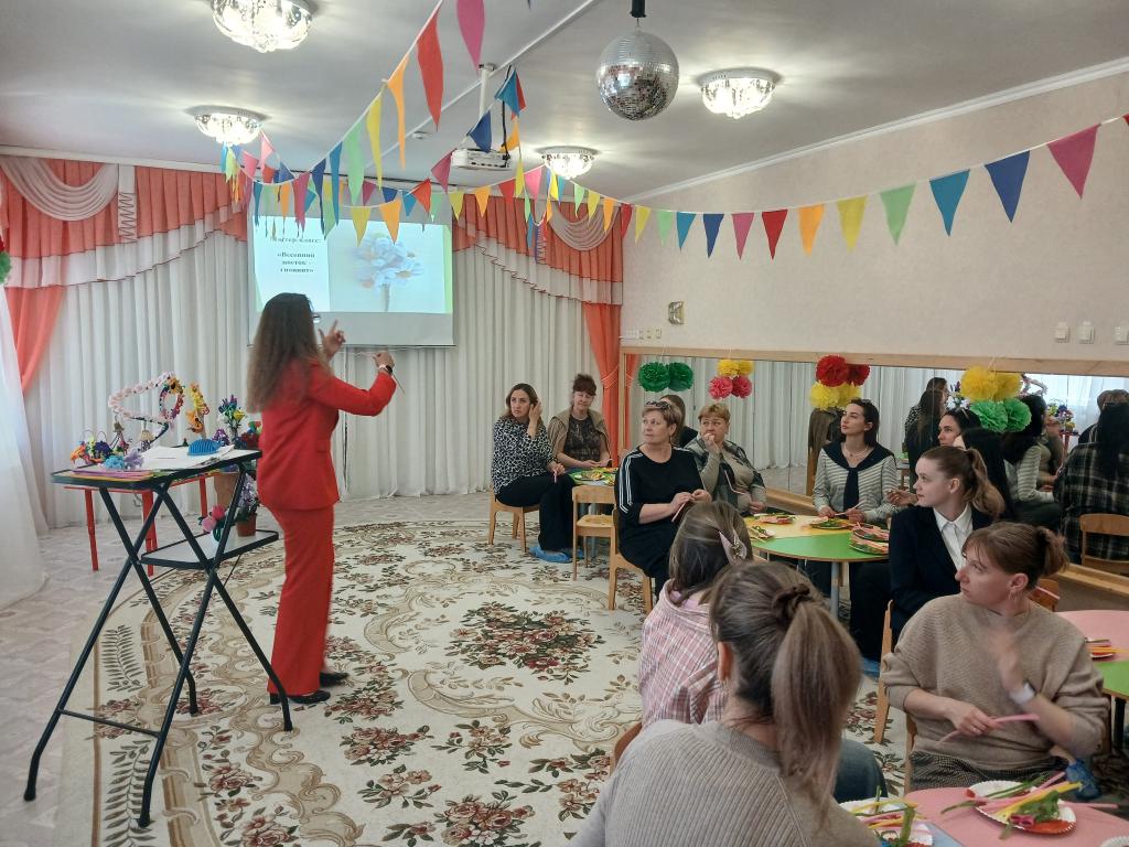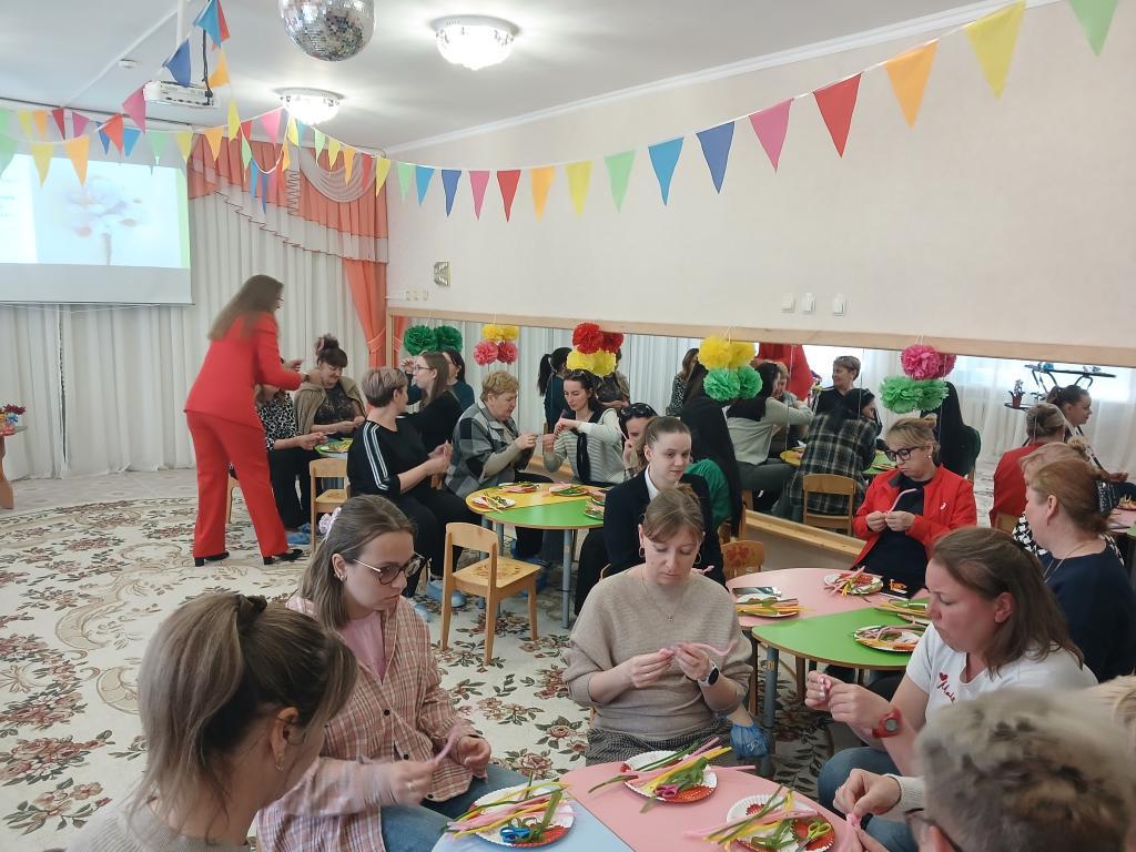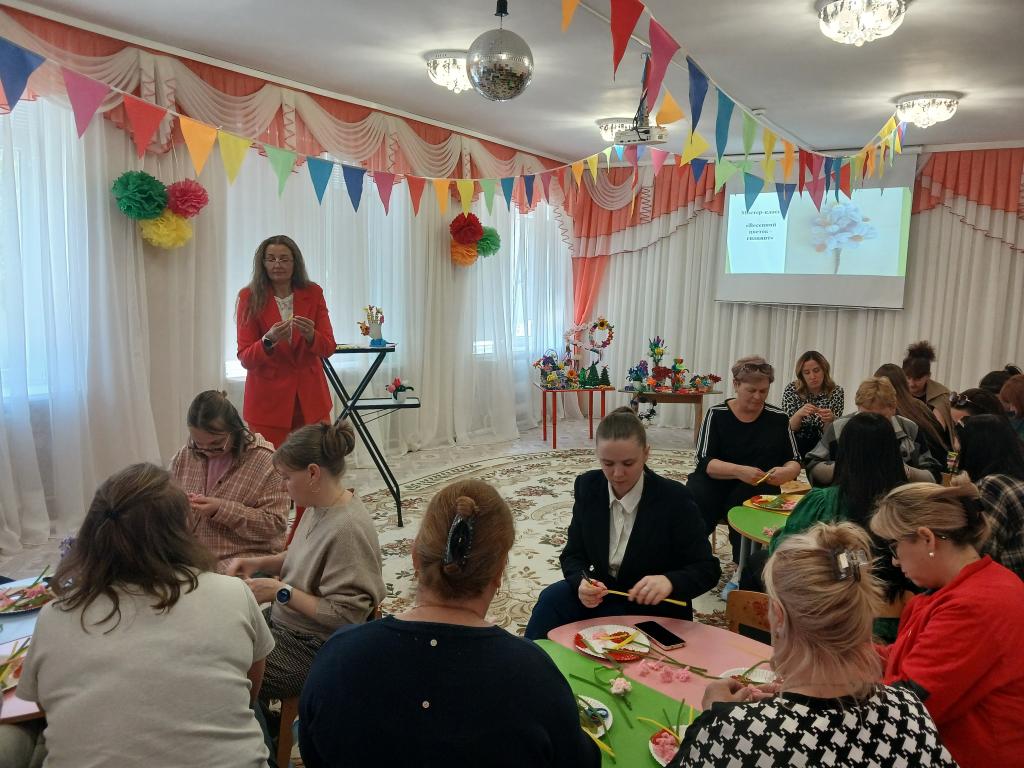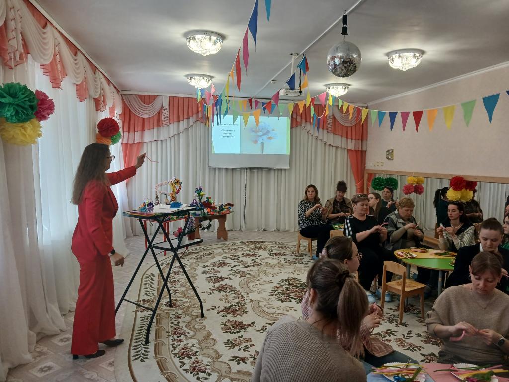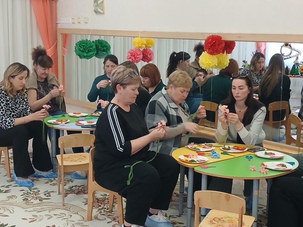 28 апреля в нашем детском саду проходило методическое объединение для воспитателей средних групп на тему: «Волшебство синельной проволоки». Воспитатель средней группы № 6 «Весёлые зайчата» Бешенцева Светлана Владимировна, презентовала свой опыт работы с дошкольниками по художественно-эстетическому и познавательному развитию: «Развитие творческого мышления детей дошкольного возраста посредством моделирования из синельной проволоки» и провела Мастер – класс с педагогами: «Сильные фантазии», научила воспитателей, используя определёные умения и навыки изготовить из синельной проволоки весенний цветок – гиацинт.