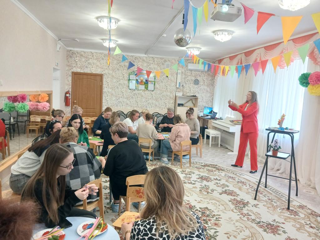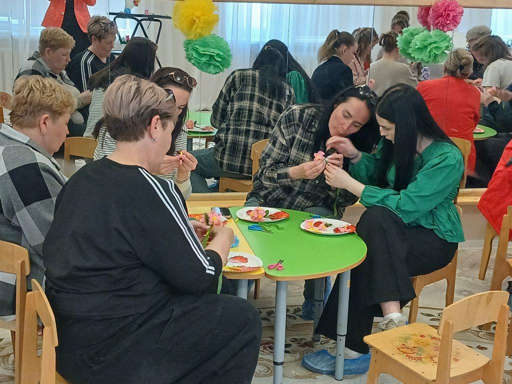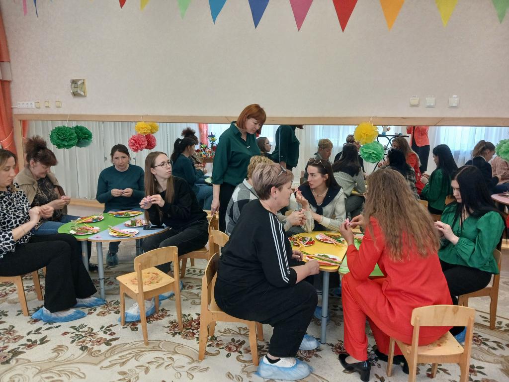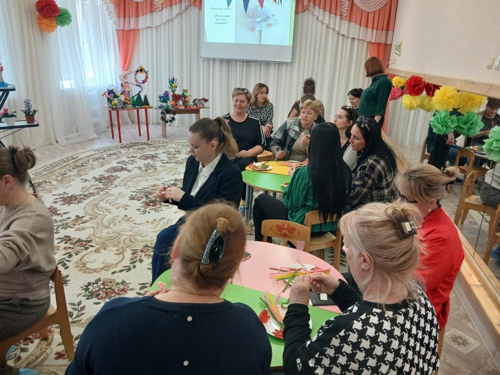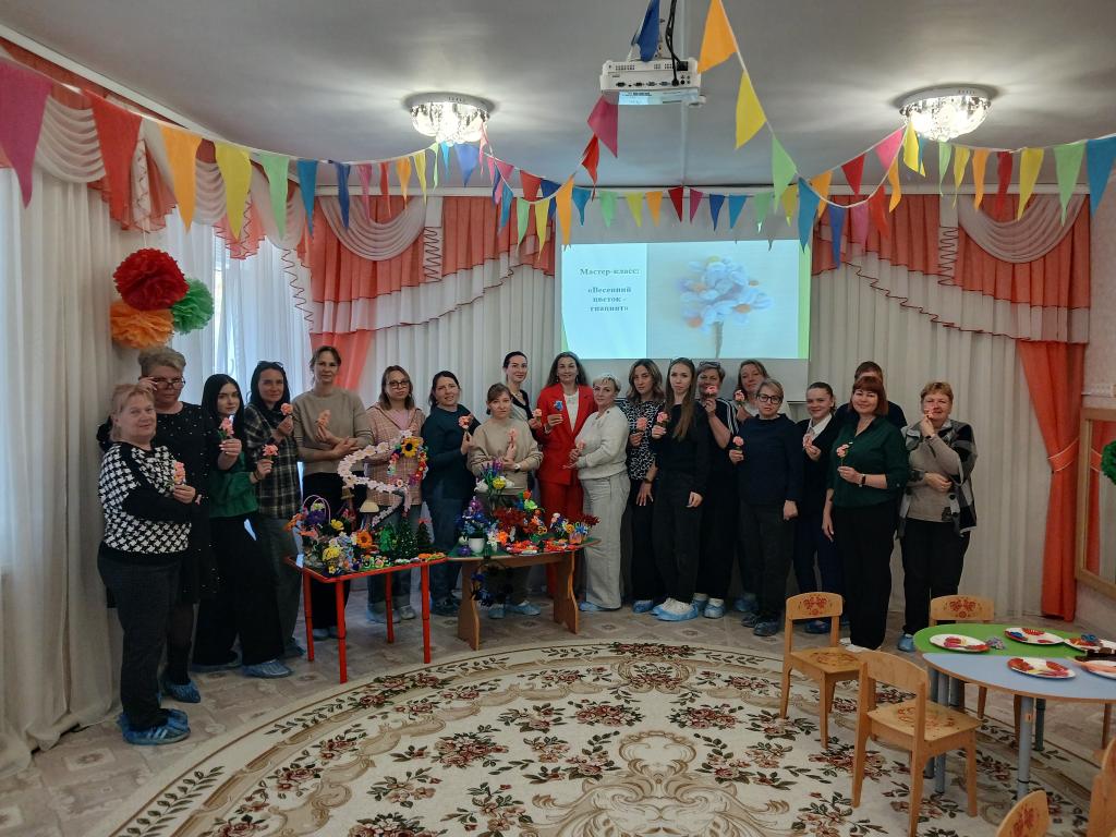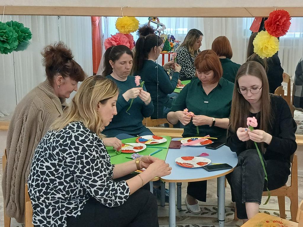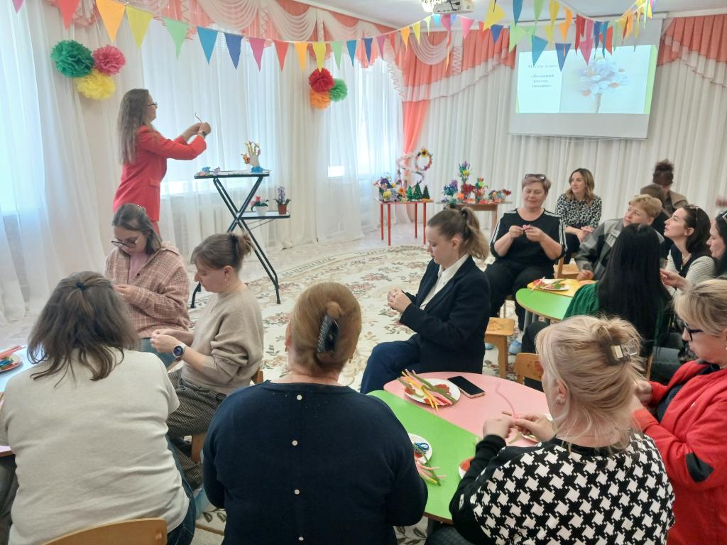 28 апреля в нашем детском саду проходило методическое объединение для воспитателей средних групп на тему: «Волшебство синельной проволоки». Воспитатель средней группы № 6 «Весёлые зайчата» Бешенцева Светлана Владимировна, презентовала свой опыт работы с дошкольниками по художественно-эстетическому и познавательному развитию: «Развитие творческого мышления детей дошкольного возраста посредством моделирования из синельной проволоки» и провела Мастер – класс с педагогами: «Сильные фантазии», научила воспитателей, используя определёные умения и навыки изготовить из синельной проволоки весенний цветок – гиацинт.