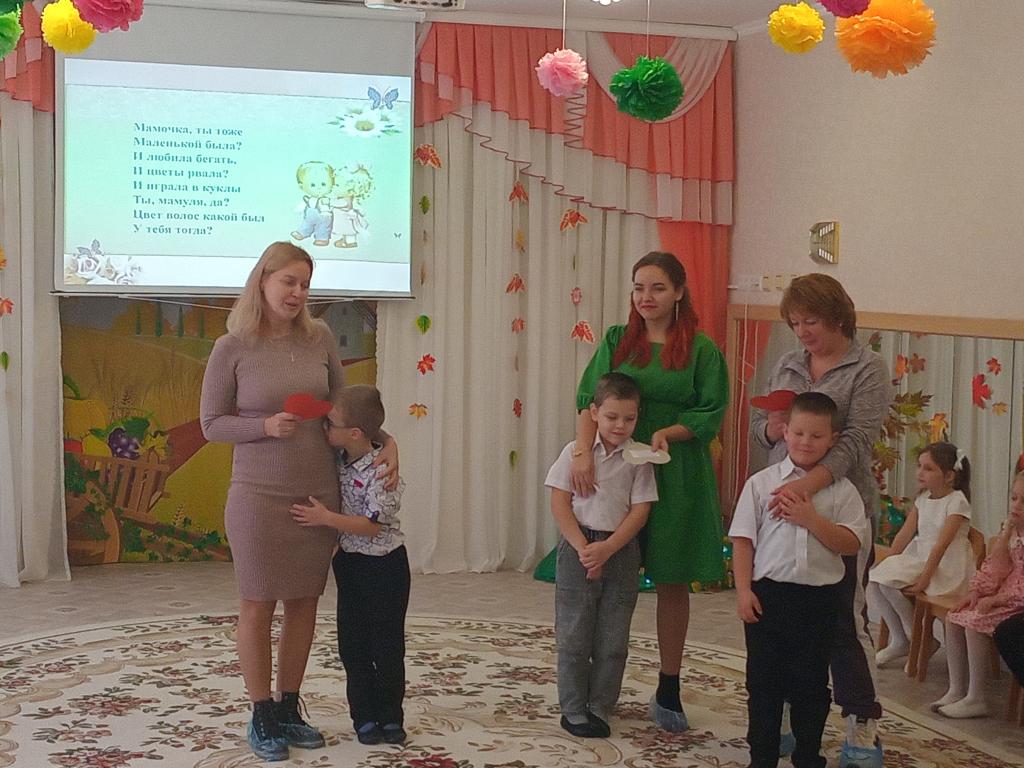 Празднование Дня матери в детском саду стало уже доброй традицией в нашем детском саду. Это праздник, к которому никто не может остаться равнодушным. Дети под руководством педагогов уже за неделю до этого праздника стали готовиться к этому замечательному дню. Были проведены различные мероприятия, главной целью которых, являлось воспитание у дошкольников любви и уважения к матери, развитие творческих способностей детей и создание уютной, домашней атмосферы праздника. С детьми проводили беседы о близком и дорогом человеке — маме, читали художественные произведения, учили песни и стихи про маму, рисовали портреты любимых мамочек и готовили им подарки, поздравления и пожелания. В заключении в подготовительной группе № 2 «Капельки» было проведено музыкальное развлечение посвящённое этому чудесному празднику. День матери в нашем детском саду прошел очень трепетно и нежно.