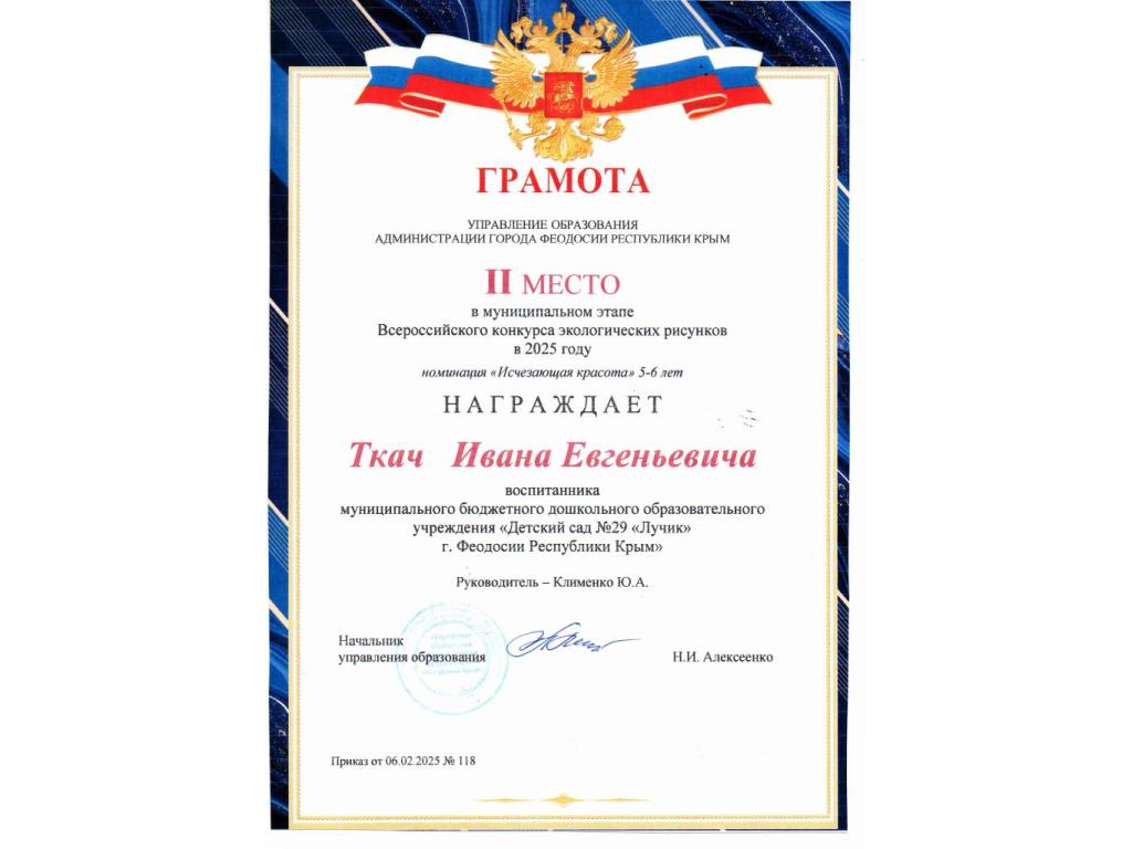 Средне-специальное - воспитатель в дошкольном учреждении (Симферопольское педагогическое училище, дата окончания 1999 г).