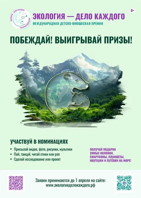 «Экология – дело каждого» – это премия Росприроднадзора за интересные, нестандартные, креативные идеи, инициативы, выдающиеся проекты, посвященные сохранению окружающей среды, бережному отношению к природе, экологическому просвещению и популяриза